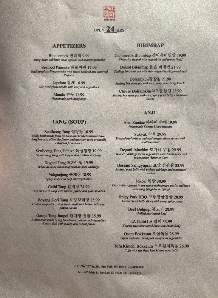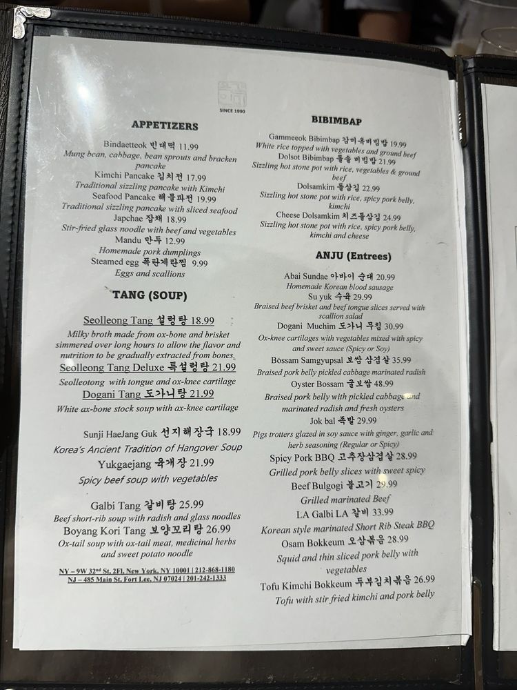 Start your culinary journey with their famous seafood pancake, packed with visible, fresh seafood. For a warming experience, the seolleongtang offers a deeply flavorful beef broth, inviting customization with scallions and housemade kimchi. This hearty soup, paired with a side of rice, is ideal for chilly days.